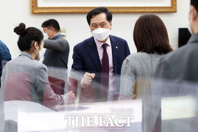 [더팩트ㅣ국회=남윤호 기자] 김기현 국민의힘 신임 원내대표가 2일 오후 서울 여의도 국회에서 열린 기자간담회에 참석해 발언하고 있다.