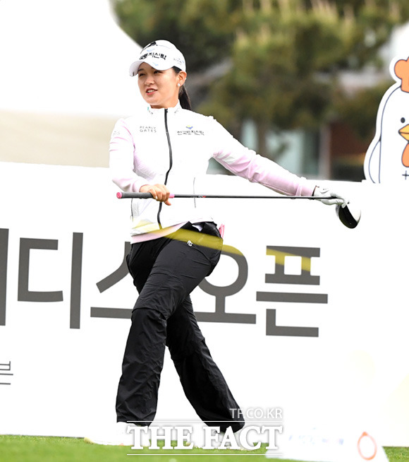 [더팩트ㅣ안산=임세준 기자] 박현경이 7일 오전 경기도 안산시 단원구 대부도 아일랜드CC에서 열린 '제7회 교촌 허니 레이디스 오픈' 1라운드에 참석해 티샷 전 준비운동을 하고 있다.