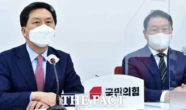 [더팩트ㅣ국회=남윤호 기자] 최태원 대한상공회의소 회장(오른쪽)이 13일 오후 서울 여의도 국회에서 김기현 국민의힘 대표 권한대행 겸 원내대표를 예방하며 악수를 나누고 있다.