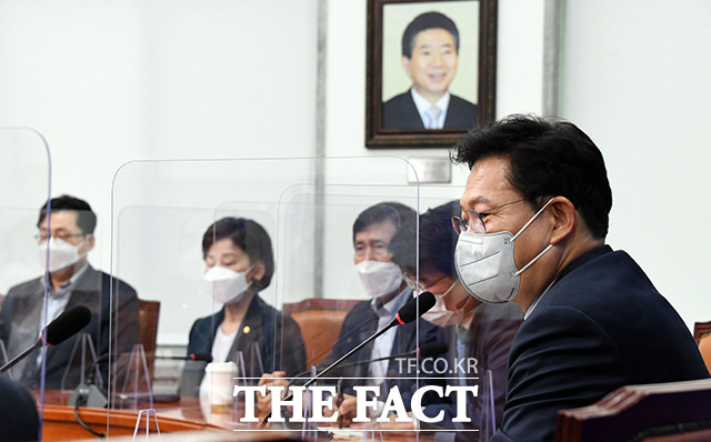 [더팩트ㅣ국회=이선화 기자] 송영길 더불어민주당 대표가 20일 오후 서울 여의도 국회에서 열린 3선 의원 간담회에 참석해 모두발언을 하고 있다.