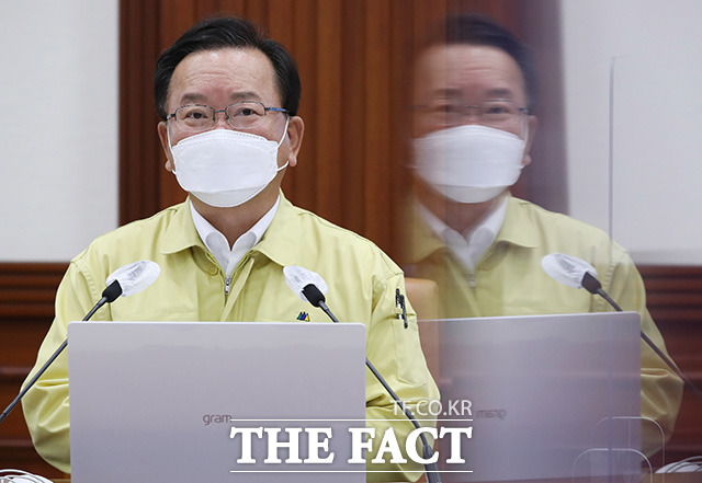 [더팩트ㅣ임영무 기자] 김부겸 국무총리가 21일 오전 서울 종로구 세종대로 정부서울청사에서 열린 코로나19 대응 중앙재난안전대책본부(중대본) 회의에서 모두발언을 하고 있다.