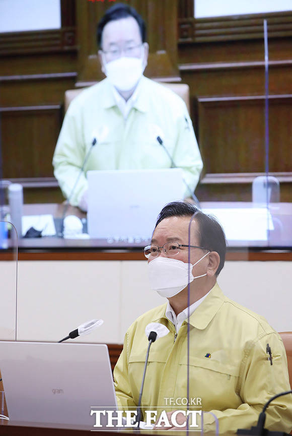 [더팩트ㅣ임영무 기자] 김부겸 국무총리가 21일 오전 서울 종로구 정부서울청사에서 열린 코로나19 대응 중앙재난안전대책본부(중대본) 회의를 주재하고 있다.