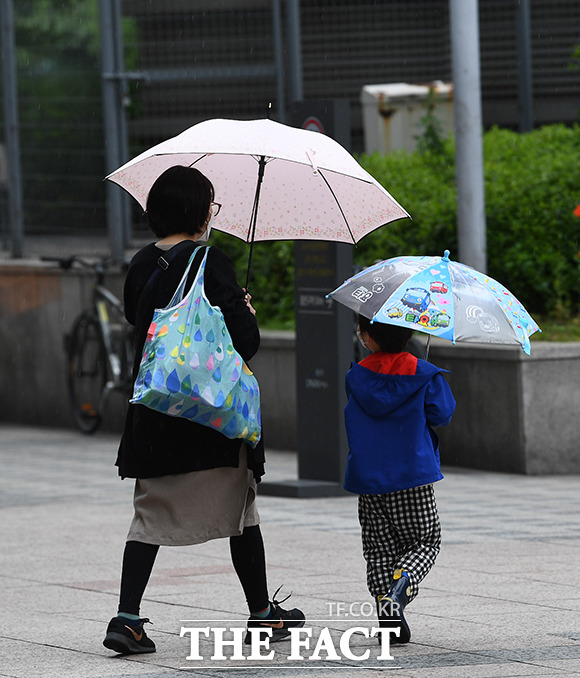 [더팩트ㅣ이동률 기자] 수도권 지역에 비가 내리는 29일 오후 서울 용산구 용산역 일대의 시민들이 우산을 쓰고 발걸음을 재촉하고 있다.