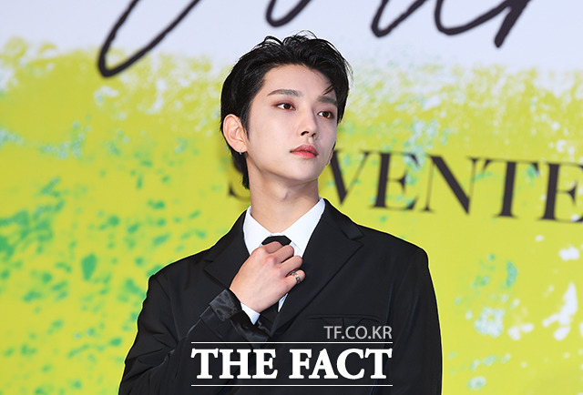 [더팩트ㅣ이동률 기자] 그룹 세븐틴의 조슈아가 18일 오후 서울 강남구 인터컨티넨탈 코엑스에서 열린 기자간담회에 참석해 포즈를 취하고 있다.