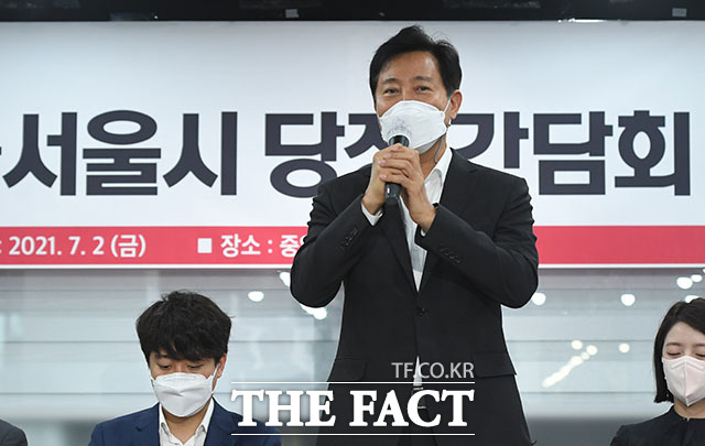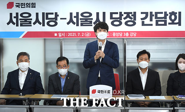 이준석 국민의힘 대표는 이날 오세훈 서울시장이 참석한 서울시당·서울시 당정간담회에 대해 "오세훈 시정의 성공이 대선 성공을 위한 첫번째 단추라고 보고 시당 차원에서 시정을 적극 지원하자, 당원 가입 추세가 늘어나는 것에 대해 시스템 편의를 개선하잔 얘기가 나왔다"고 설명했다.