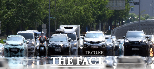 [더팩트ㅣ이동률 기자] 전국적으로 무더운 날씨를 보인 2일 오후 서울 영등포구 여의도환승센터 인근의 도로에서 아지랑이가 피어오르고 있다.
