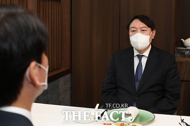 [더팩트ㅣ국회사진취재단] 안철수 국민의당 대표(왼쪽)와 대권 주자 윤석열 전 검찰총장이 7일 서울 종로구 한 중식당에서 만나 오찬 회동을 하고 있다. 안 대표와 윤 전 총장은 이날 첫 만남을 통해 야권 통합 구상을 그릴 전망이다.