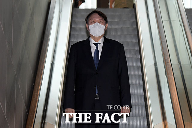 [더팩트ㅣ남윤호 기자] 대권 주자 윤석열 전 검찰총장이 7일 오후 서울 종로구의 한 건물에서 안철수 국민의당 대표와 오찬 회동을 마친 후 브리핑 장소로 이동하고 있다.