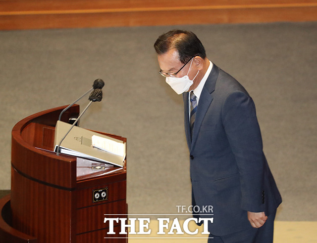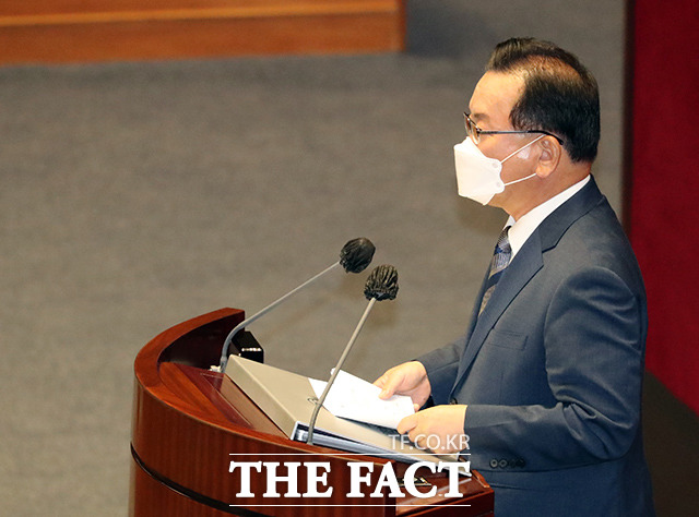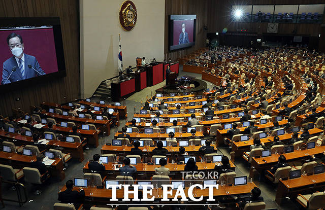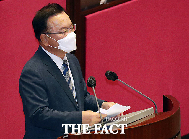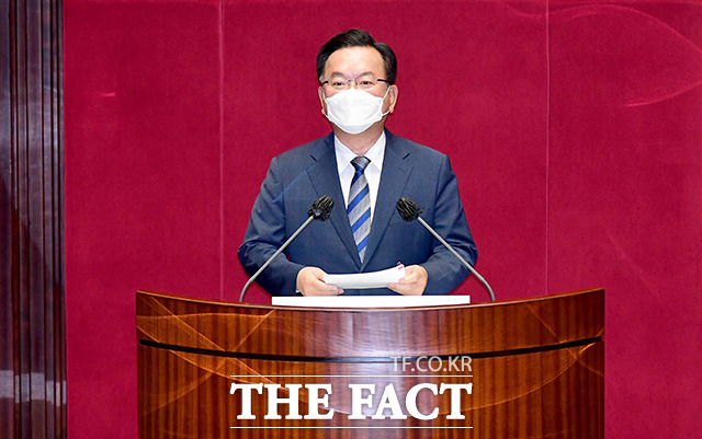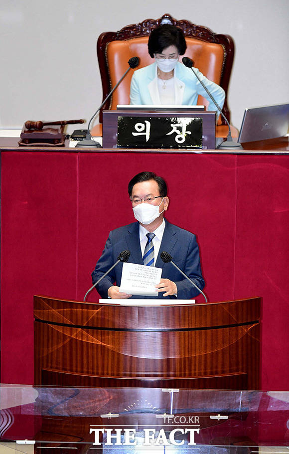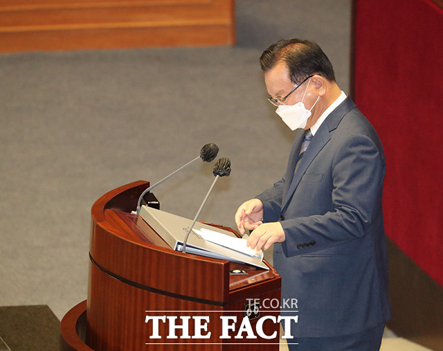 [더팩트ㅣ국회=이선화 기자] 김부겸 국무총리가 8일 오전 서울 여의도 국회에서 열린 본회의에서 2차 추경안 관련 시정연설을 하고 있다.