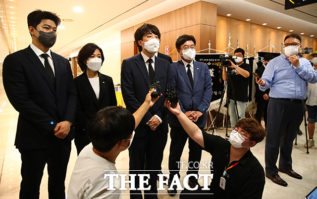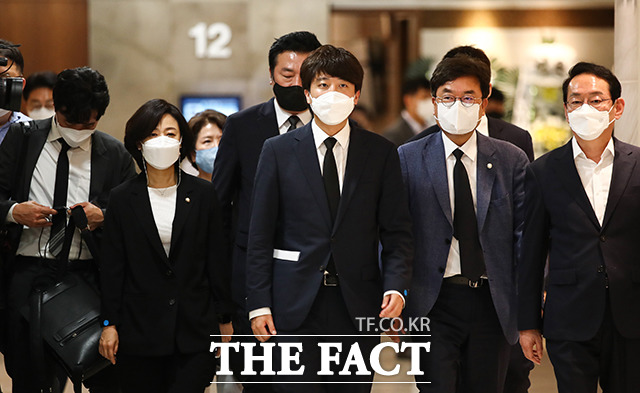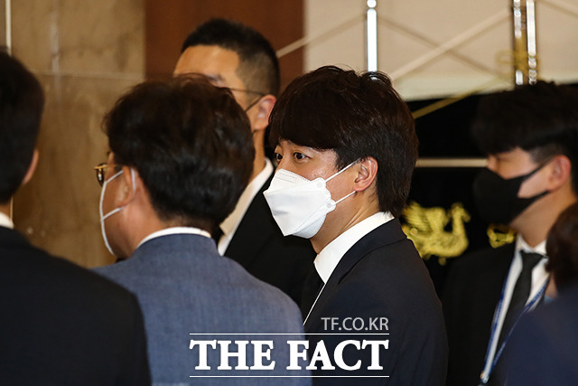 [더팩트ㅣ국회사진취재단] 이준석 국민의힘 대표가 8일 오후 서울 서대문구 신촌세브란스병원 장례식장에 마련된 최재형 전 감사원장의 부친 최영섭 예비역 해군 대령 조문을 위해 빈소로 이동하고 있다.