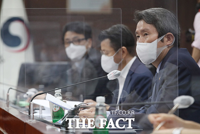 [더팩트ㅣ임영무 기자] 이인영 통일부 장관이 30일 오전 서울 종로구 정부서울청사에서 열린 출입 기자단 간담회에 참석해 모두발언을 하고 있다.