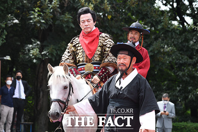 [더팩트ㅣ고양=남윤호 기자] 허경영 국가혁명당 명예대표가 18일 경기도 고양시 행주산성에서 대통령 출마 선언을 앞두고 행주대첩을 재연하고 있다.