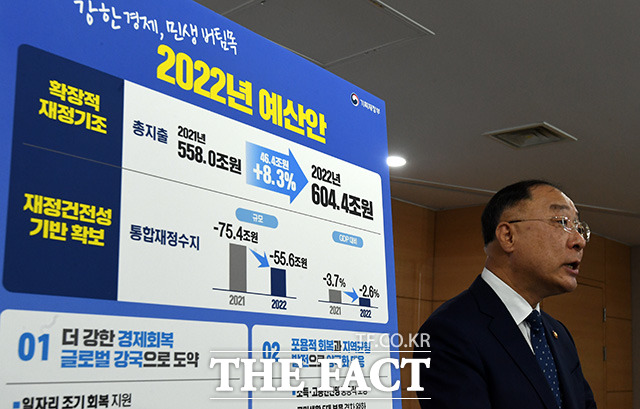 [더팩트ㅣ임영무 기자] 홍남기 경제부총리 겸 기획재정부 장관이 31일 오전 서울 종로구 정부서울청사 합동브리핑실에서 2022년 예산안 및 2021-2025년 국가재정운용계획을 브리핑하고 있다.