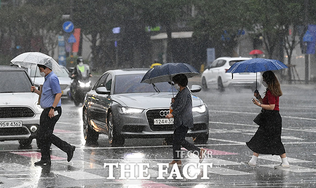 기상청은 서해 상에서 유입된 강한 비구름의 영향으로 모레까지 전국에 강한 비가 내릴것으로 전망했다.
