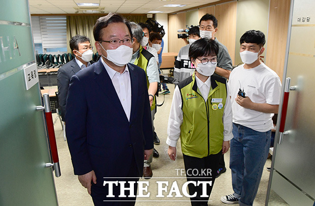 보건의료노조 실무교섭 회의장 찾은 김부겸 총리 [포토]