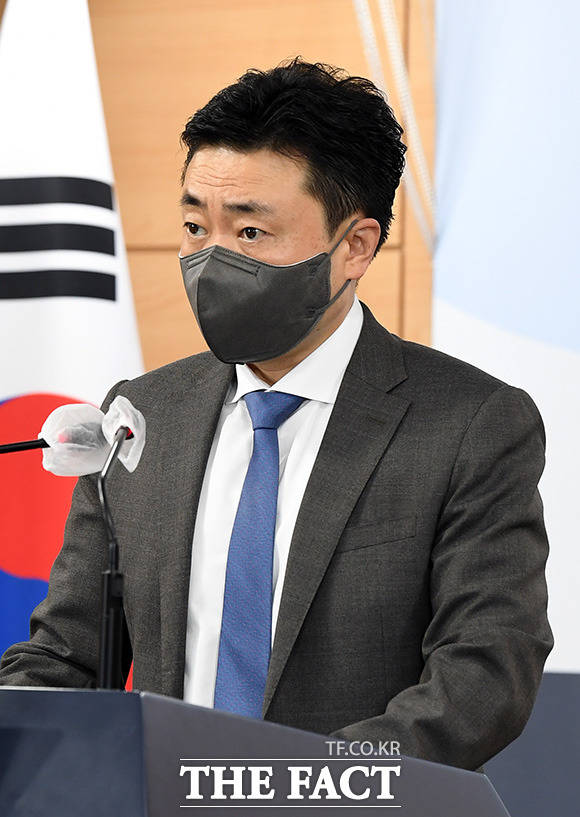 [더팩트ㅣ임영무 기자] 차덕철 통일부 부대변인이 3일 오전 서울 종로구 정부서울청사 합동브리핑실에서 정례브리핑을 하고 있다.