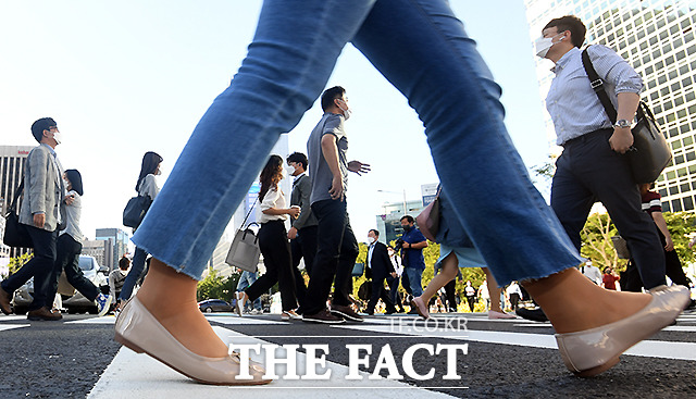 [더팩트ㅣ이새롬 기자] 추석 연휴가 끝난 23일 오전 서울 종로구 광화문 일대에서 일상으로 돌아온 시민들이 출근길 발걸음을 재촉하고 있다.
