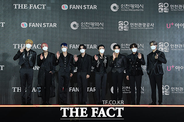 [더팩트ㅣ인천=배정한 기자] 2일 더팩트가 주최하고 팬앤스타(FAN N STAR)가 주관하는 '2021 TMA' 사전행사 레드카펫에서 그룹 에이티즈가 포즈를 취하고 있다.