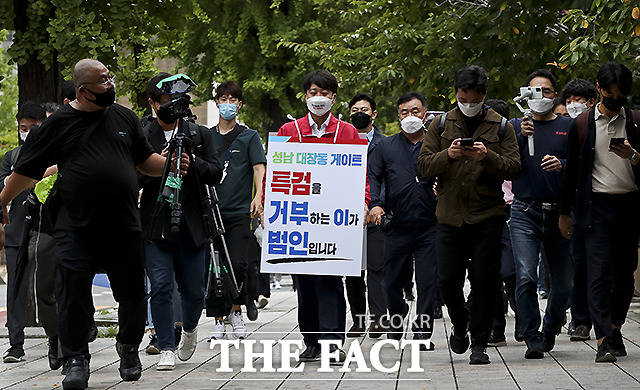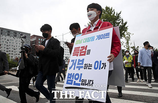[더팩트ㅣ이새롬 기자] 이준석 국민의힘 대표가 6일 서울 여의도 국회에서 '이재명 대장동 게이트 특검 촉구' 기자회견을 마친 뒤 특검 도입을 촉구하는 도보투쟁을 위해 국회를 나서고 있다.