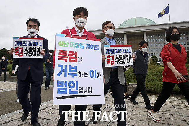 이 대표는 이날 국회에서 '이재명 대장동 게이트' 특검을 촉구하는 기자회견을 열고 국회에서 청와대까지 특검 도입을 촉구하는 도보투쟁을 벌였다.