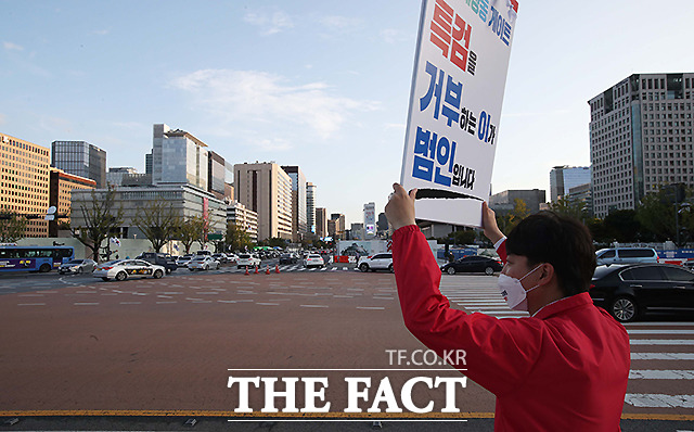 그러면서 "저는 오늘 이 기자회견을 마치고 국회가 있는 여의도에서 출발해 청와대까지 도보로 이동하면서 국민들에게 특검법의 당위성을 알리고 무엇보다도 문재인 정부가 이 사건을 묻기 위해서 하고 있는 이런 지지부진한 수사의 부당함을 알릴 것"이라고 말했다.