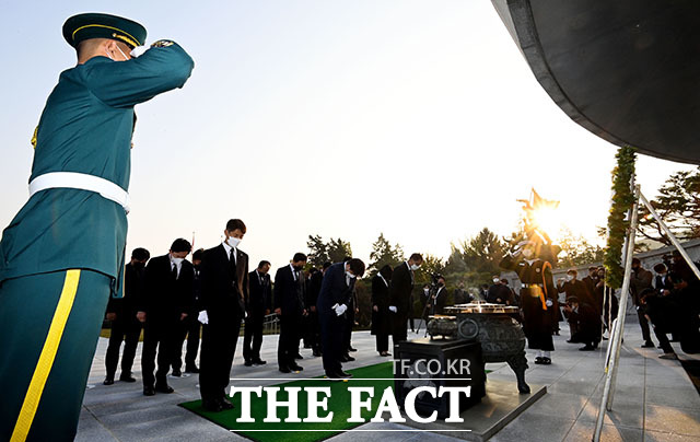 국민의힘 지도부와 대선 경선 후보들은 현충탑을 참배 한 후 박정희 전 대통령 묘역을 참배했다. 이날 오전 참배에 참석하지 않은 윤석열 경선 후보는 오후에 박 전 대통령의 묘를 찾아 참배할 예정이다.