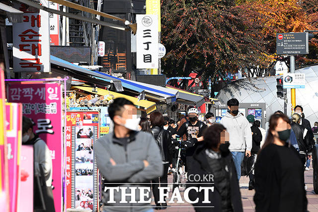 [더팩트ㅣ남용희 기자] 단계적 일상회복(위드 코로나) 시행 둘째 날인 2일 오후 서울 마포구 홍대 거리를 방문한 시민들이 발걸음을 옮기고 있다.