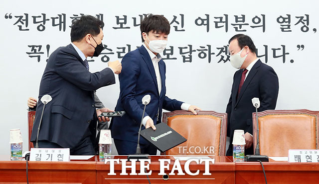 한기호 사무총장에 대한 교체설이 꾸준히 제기되고 있는 가운데 이준석 대표는 이날 회의에 참석해 "저는 공개 발언이 없습니다"라며 입을 닫았다.