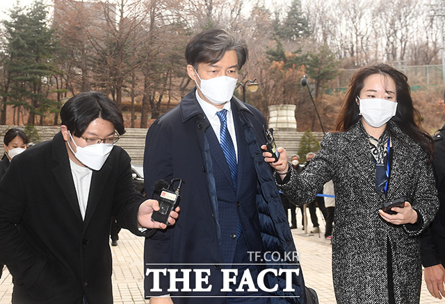 [더팩트ㅣ이동률 기자] 자녀 입시비리 혐의를 받고 있는 조국 전 법무부 장관이 24일 오전 서울 서초구 서울중앙지방법원에서 열린 공판에 출석하고 있다.