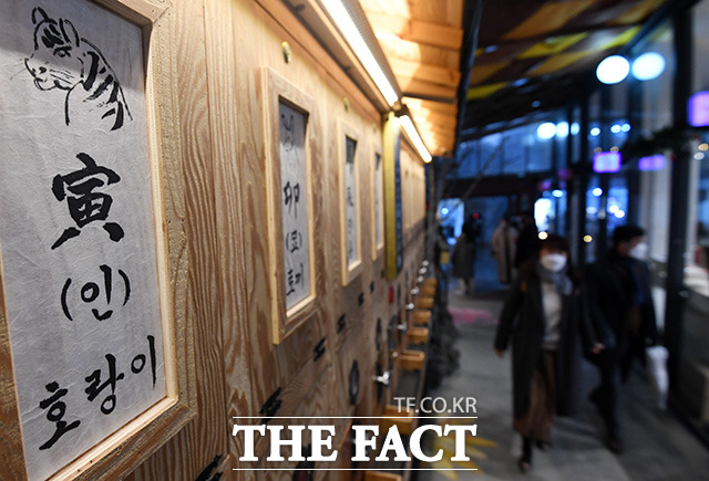 [더팩트ㅣ남용희 기자] 2022년 임인년 새해를 사흘 앞둔 29일 오후 서울 종로구 인사동을 방문한 시민들이 2022년 운세뽑기 앞을 지나고 있다.