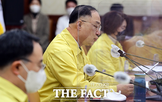 홍남기 경제부총리 겸 기획재정부 장관이 30일 오전 서울 종로구 정부서울청사에서 열린 제51차 비상경제 중앙대책본부 회의를 주재하고 있다./임영무 기자