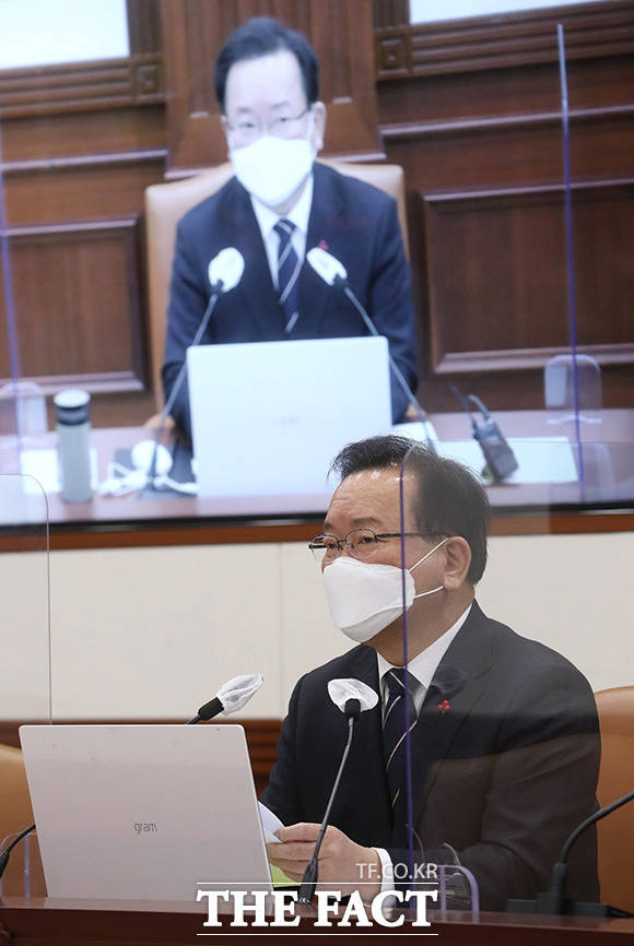 [더팩트ㅣ임영무 기자] 김부겸 국무총리가 6일 오전 서울 종로구 정부서울청사에서 열린 국정현안점검조정회의에 참석해 모두발언을 하고 있다.