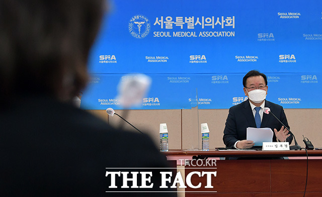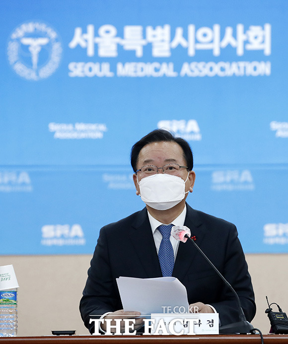 [더팩트ㅣ임영무 기자] 김부겸 국무총리가 26일 오전 서울 영등포 서울시의사회에서 열린 '동네 병·의원 중심 의료대응 현장 간담회'에 참석해 모두발언을 하고 있다.