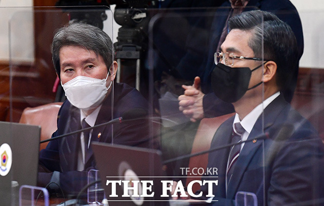 [더팩트ㅣ임영무 기자] 이인영 통일부 장관이 3일 오전 서울 종로구 정부서울청사에서 열린 국무회의에 참석해 서욱 국방부 장관을 바라보고 있다.