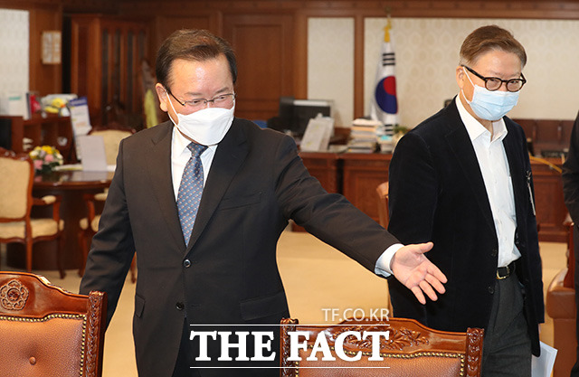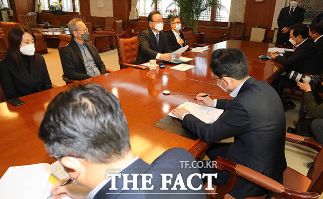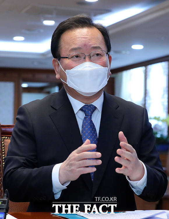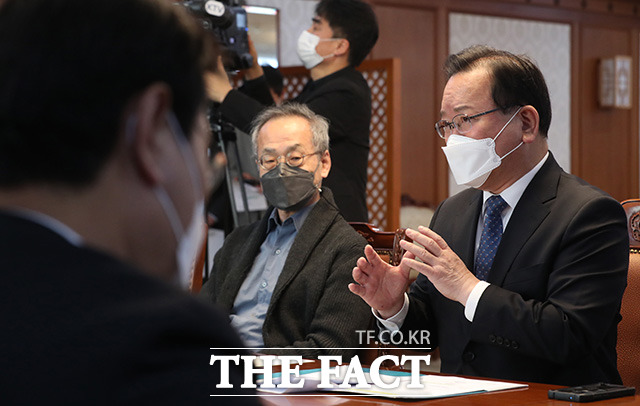 [더팩트ㅣ임영무 기자] 김부겸 국무총리가 24일 오후 서울 종로구 서울정부청사 총리 집무실에서 오미크론 대응 관련 전문가 간담회를 갖고 있다.