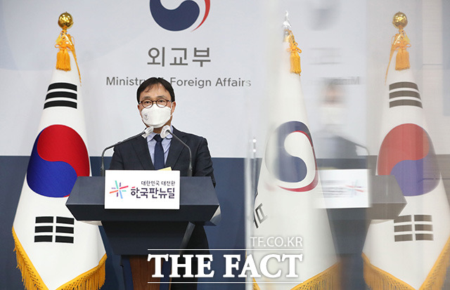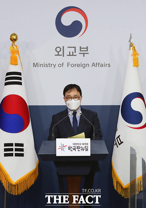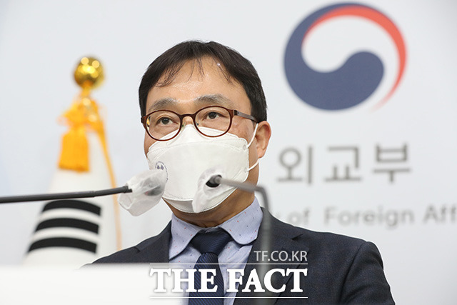 [더팩트ㅣ임영무 기자] 최영삼 외교부 대변인이 24일 오후 서울 종로구 외교부 청사에서 열린 정례브리핑에서 우크라이나 사태와 관련해 발언하고 있다.