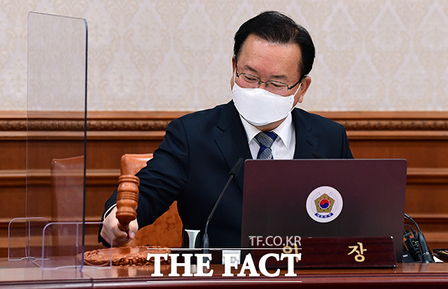 [더팩트ㅣ임영무 기자] 김부겸 국무총리가 2일 오전 서울 종로구 정부서울청사에서 열린 국무회의를 주재하며 의사봉을 두드리고 있다.