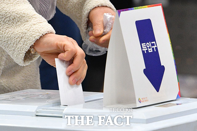 [더팩트ㅣ남윤호 기자] 제20대 대통령 선거 투표일인 9일 오전 서울 용산구 한남동 제3투표소에서 유권자가 투표를 하고 있다.