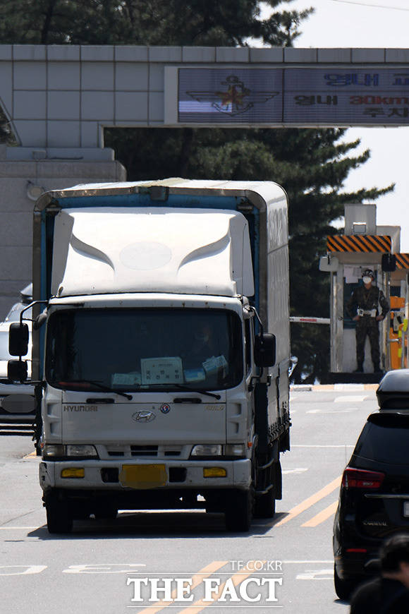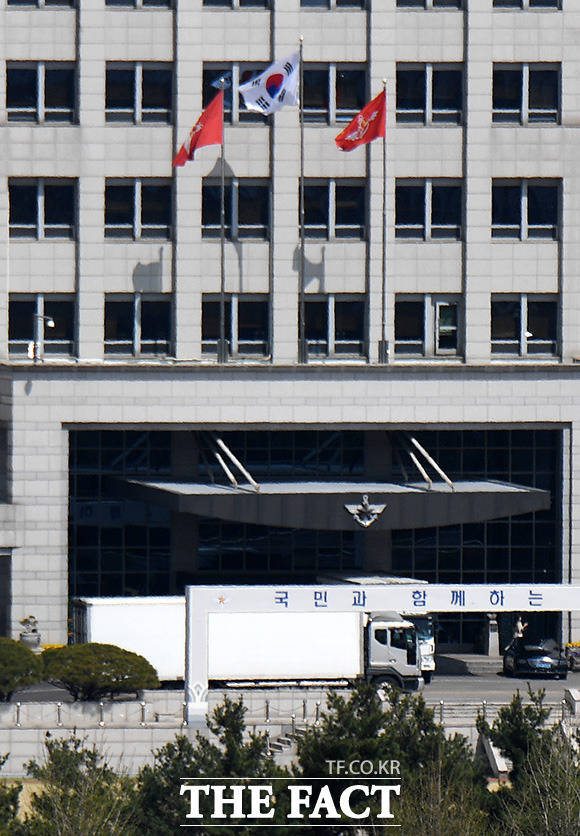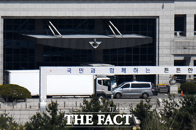 [더팩트ㅣ남용희 기자] 대통령 취임식을 한 달여 앞둔 11일 오후 서울 용산구 국방부에서 대통령 집무실 이전에 따른 국방부 청사 이사 작업 차량이 이동하고 있다.