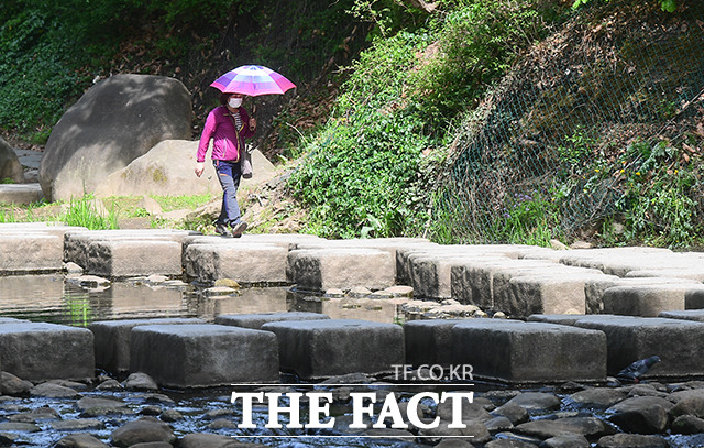 [더팩트ㅣ이동률 기자] 전국적으로 고온현상이 이어지고 있는 26일 오후 서울 서대문구 홍제천 인공폭포를 찾은 시민들이 더위를 식히고 있다.기상청은 이날 전국이 중국 북부지방에서 남동진하는 고기압의 가장자리에 들어 25도 안팎의 초여름 날씨를 보일것으로 전망했다.fedaikin@tf.co.kr사진영상기획부 photo@tf.co.kr