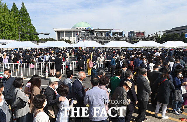 [더팩트ㅣ이효균 기자] 제20대 대통령 취임식이 열리는 10일 오전 행사장이 마련된 국회의사당으로 시민들이 입장하고 있다.