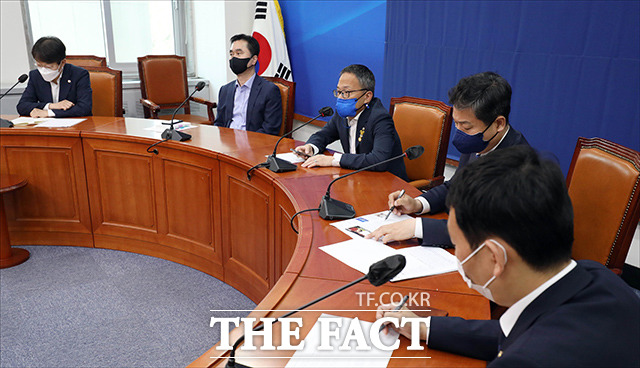 [더팩트|국회=이선화 기자] 박주민 더불어민주당 의원과 법사위 소속 더불어민주당 의원들이 16일 오전 서울 여의도 국회에서 한동훈 법무부 장관 후보자 인사청문회 현안과 관련해 기자간담회를 갖고 있다.