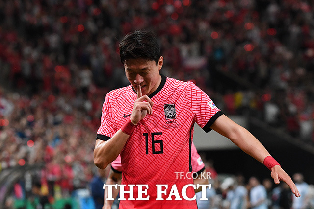 [더팩트ㅣ서울월드컵경기장=남용희 기자] 대한민국과 브라질의 평가전이 2일 오후 서울 마포구 서울월드컵경기장에서 열린 가운데 황의조가 득점 후 세리머니를 하고 있다.