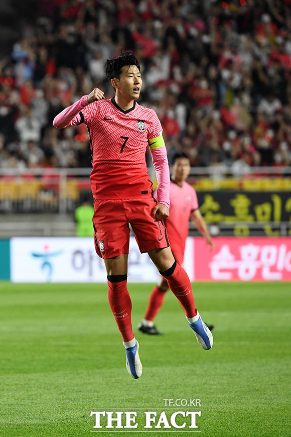 [더팩트ㅣ수원월드컵경기장=남용희 기자] 대한민국과 파라과이의 평가전이 10일 오후 경기도 수원시 팔달구 수원월드컵경기장에서 열린 가운데 손흥민이 득점 후 기뻐하고 있다.