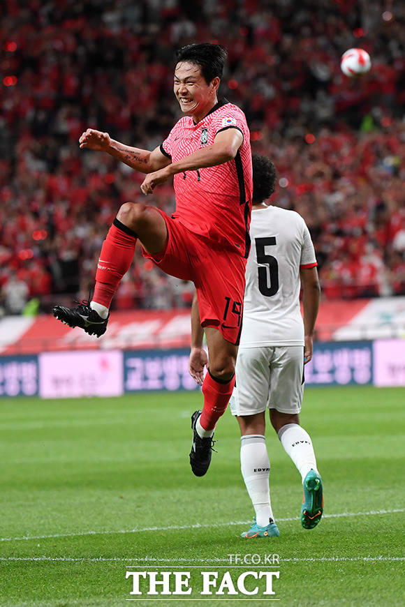 [더팩트ㅣ서울월드컵경기장=남용희 기자] 대한민국과 이집트의 평가전이 14일 오후 서울 마포구 서울월드컵경기장에서 열린 가운데 김영권이 득점 후 기뻐하고 있다.