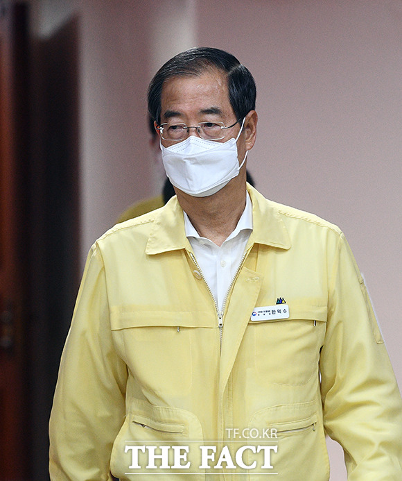 [더팩트ㅣ이동률 기자] 한덕수 국무총리가 17일 오전 서울 종로구 정부서울청사에서 열린 코로나19 중앙재난안전대책본부(중대본) 회의에 참석하고 있다.