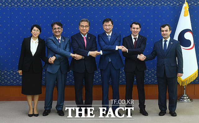 [더팩트ㅣ이동률 기자] 박진 외교부 장관이 22일 오전 서울 종로구 정부서울청사 별관 외교부에서 주한중앙아시아 대사들과 기념촬영을 하고 있다.박 장관은 이날 주한중앙아시아 5개국 대사들과 차담회를 가지며 새 정부와 중앙아시아와의 협력을 강조했다.fedaikin@tf.co.kr사진영상기획부 photo@tf.co.kr