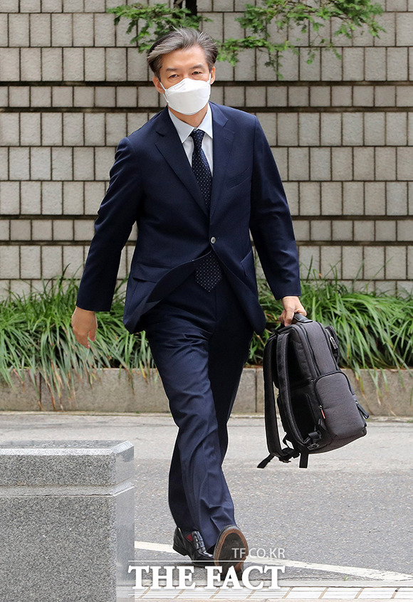 [더팩트ㅣ이동률 기자] 자녀 입시 비리 등의 혐의로 재판에 넘겨진 조국 전 법무부 장관이 24일 오전 서울 서초구 서울중앙지방법원에서 열린 공판에 출석하고 있다.