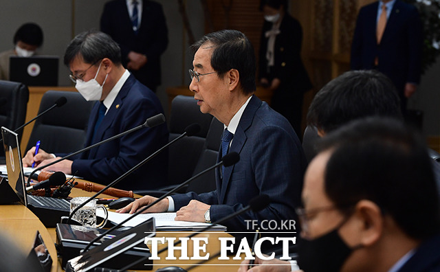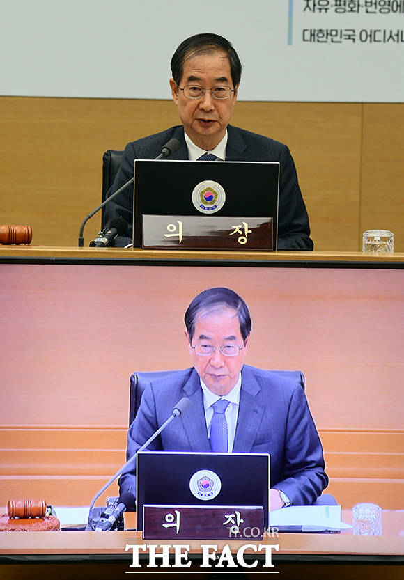 [더팩트ㅣ세종=임영무 기자] 한덕수 국무총리가 18일 오전 세종시 정부세종청사에서 국무회의를 주재하고 있다.