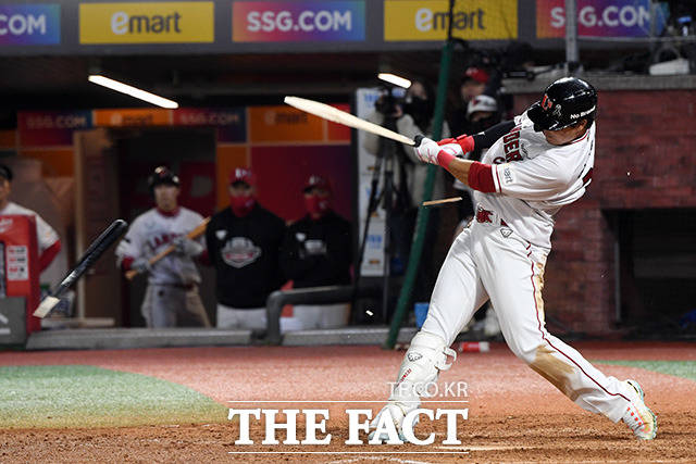 [더팩트ㅣSSG랜더스필드=남용희 기자] '2022 KBO리그 한국시리즈 1차전' SSG 랜더스와 키움 히어로즈의 경기가 1일 오후 인천 미추홀구 인천 SSG 랜더스필드에서 열린 가운데 한유섬이 스윙을 하고 있다.
